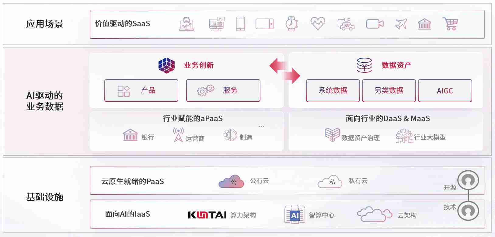 数字时代,,,,围绕企业数字化转型的关键要素,,,,尊龙时凯数码开创性的提出数云融合战略和技术体系框架,,,,着力在云原生、、数字原生、、、AI原生和信创产业上架构产品和服务能力,,,,为处在不同数字化转型阶段的快消零售、、、、汽车、、、、金融、、、医疗、、政企、、、教育、、、运营商等行业客户提供泛在的敏捷IT能力和融合的数据驱动能力,,,,构建跨界融合创新的数字业务场景和新业务模式,,助力企业级客户建立面向未来的核心能力和竞争优势,,,,全面推动社会的数字化、、智能化转型升级。。
